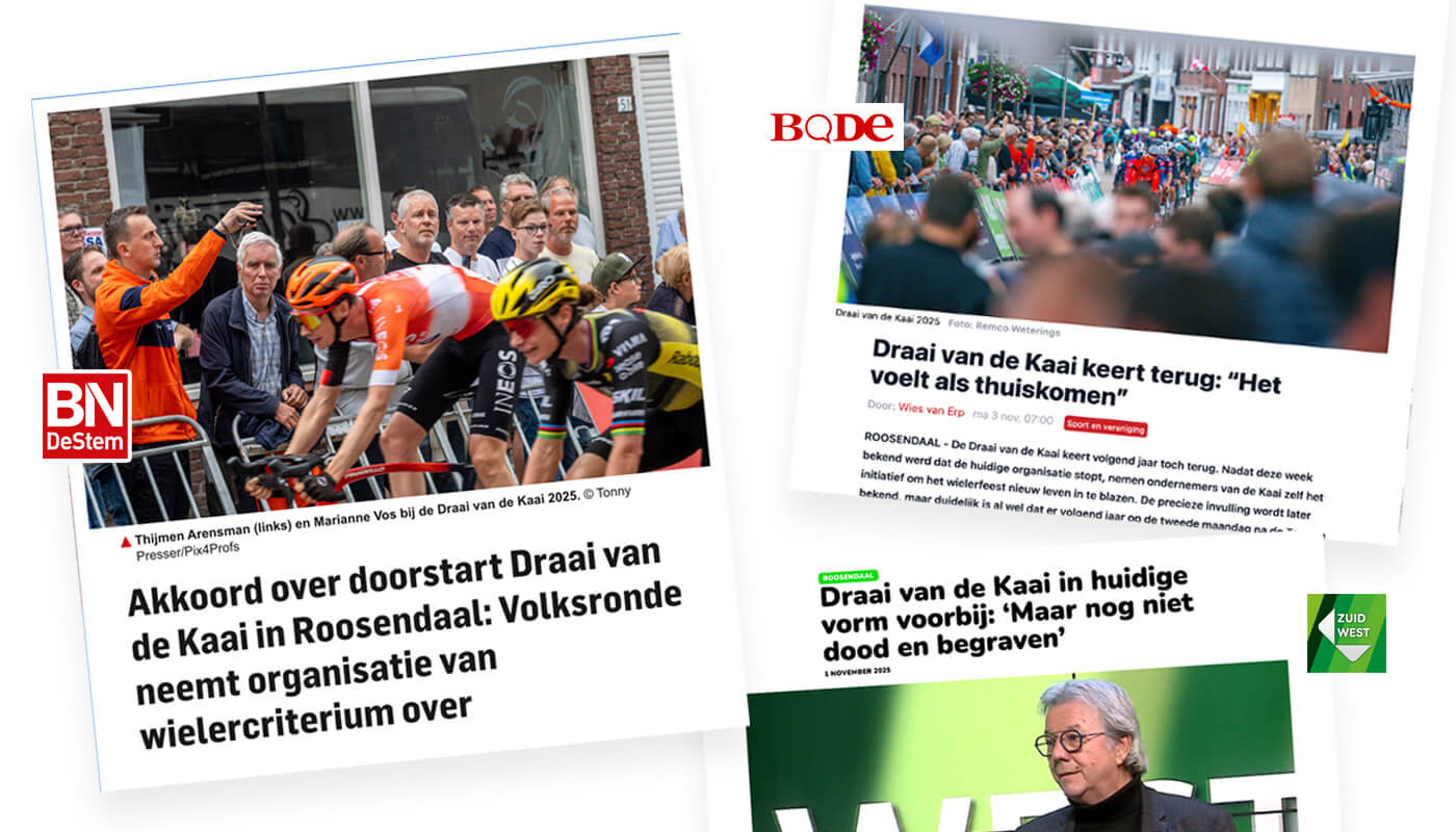 De besturen van Stichting Draai van de Kaai en Stichting Volksronde Roosendaal hebben samen besloten dat de wielertraditie Draai van de Kaai toch blijft bestaan. Stichting Volksronde Roosendaal neemt de organisatie over, nadat eerder bekend werd dat het bestuur van Draai van de Kaai stopt.